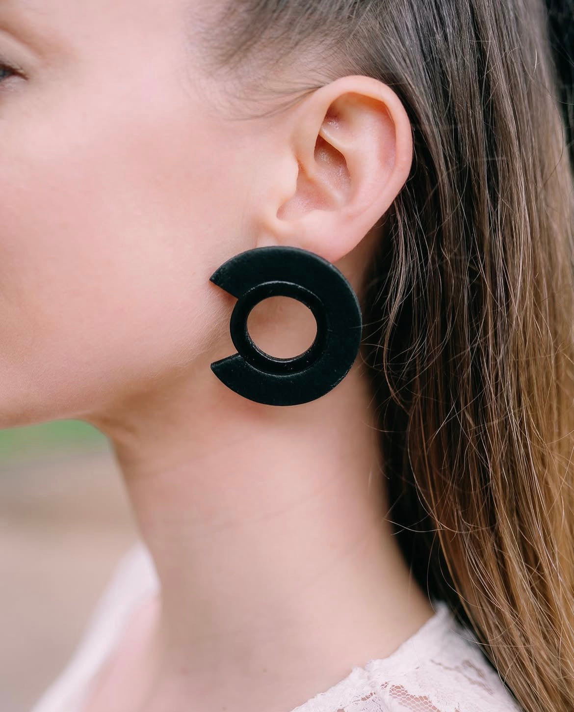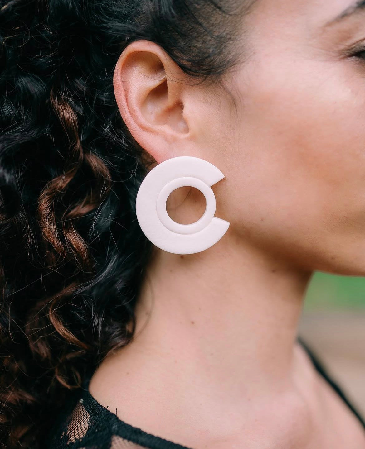 Brincos grandes de formato redondo com centro aberto. Um design único que define bem a Amla.